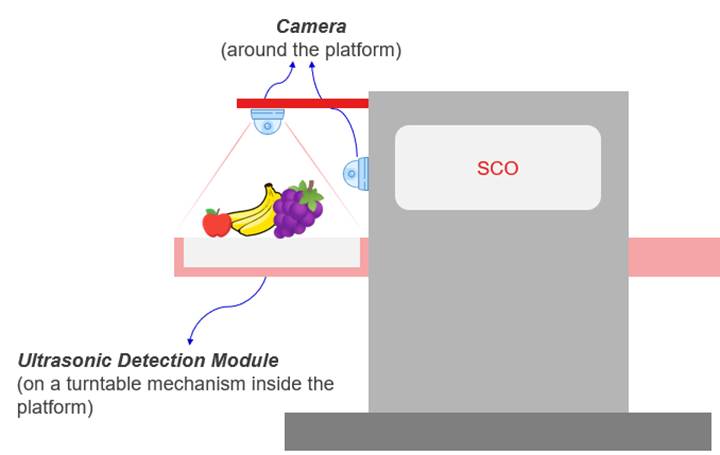 This idea uses ultrasonic and camera inspection methods integrated into the SCO system. While customers are performing check-out, our system will conduct an inspection of produce quality simultaneously and provide reminders about their choices. With the aid of camera monitoring, the detection of shape/color enhances and re-confirms the test results from ultrasonic inspection. The inspection with ultrasonic is a NDT(Non-Destructive Test) which will not alter the fruits/vegetables from their original condition due to the inspection. Also using the difference of echo time, we could gather information on density of fruit with a scientific/statistical method in order to have judgement on the quality.