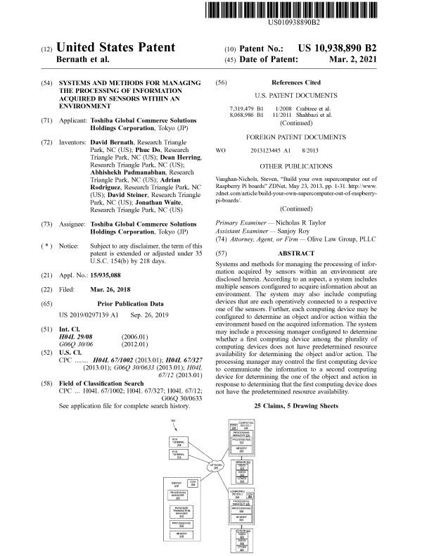 Systems and methods for managing the processing of information acquired by sensors within an environment are disclosed herein. According to an aspect, a system includes multiple sensors configured to acquire information about an environment. The system may also include computing devices that are each operatively connected to a respective one of the sensors. Further, each computing device may be configured to determine an object and/or action within the environment based on the acquired information. The system may include a processing manager configured to determine whether a first computing device among the plurality of computing devices does not have predetermined resource availability for determining the object and/or action. The processing manager may control the first computing device to communicate the information to a second computing device for determining the one of the object and action in response to determining that the first computing device does not have the predetermined resource availability.