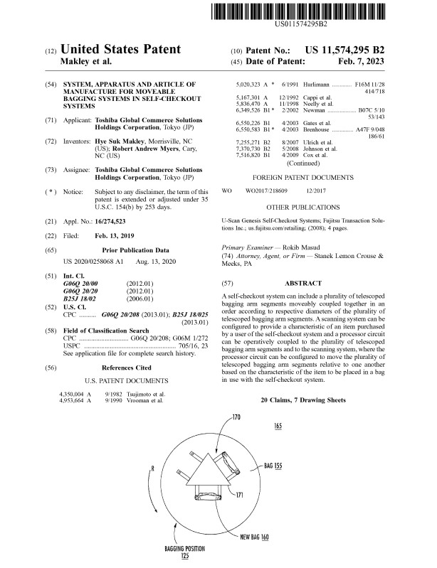 A self-checkout system can include a plurality of telescoped bagging arm segments moveably coupled together in an order according to respective diameters of the plurality of telescoped bagging arm segments. A scanning system can be configured to provide a characteristic of an item purchased by a user of the self-checkout system and a processor circuit can be operatively coupled to the plurality of telescoped bagging arm segments and to the scanning system, where the processor circuit can be configured to move the plurality of telescoped bagging arm segments relative to one another based on the characteristic of the item to be placed in a bag in use with the self-checkout system.