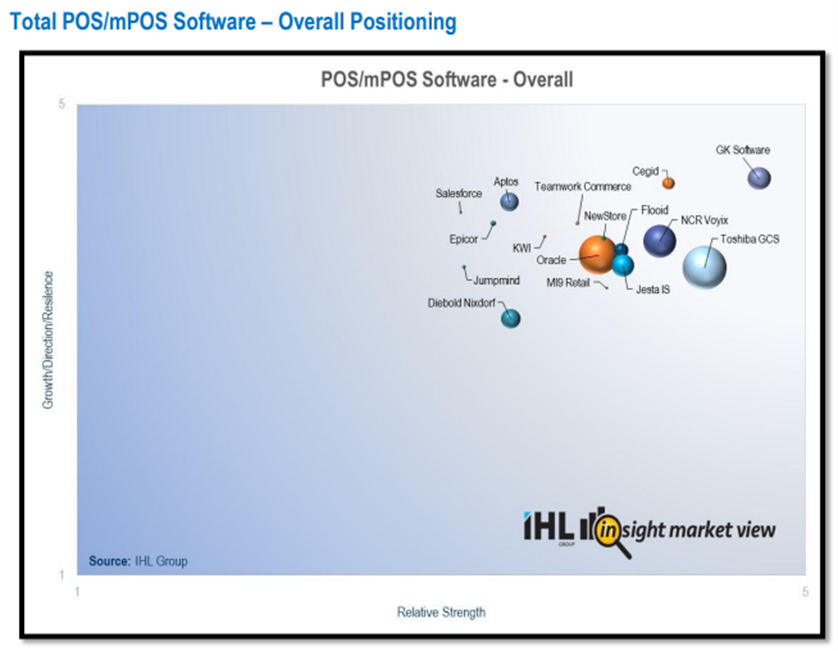 Graphic: In the IHL Group Insight Market View of the POS/mPOS landscape, Toshiba is positioned in the upper-right leadership quadrant, reflecting a combination of strong market presence, positive growth trajectory, and operational resilience. While many leading vendors cluster tightly in this zone, Toshiba distinguishes itself by pairing this high placement with one of the largest bubble sizes on the chart, signaling a significant installed base alongside forward momentum.